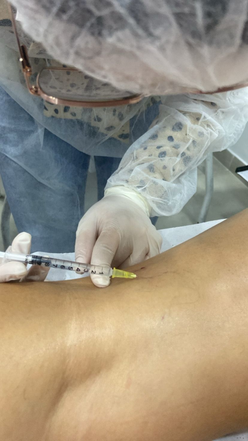 “Utilizamos uma agulha bem fina, injetando um líquido – chamado de esclerosante – no vaso que vai causar a alteração das células e acarretar a obstrução da veia. Com isso, o aspecto saudável da perna volta a aparecer.”
